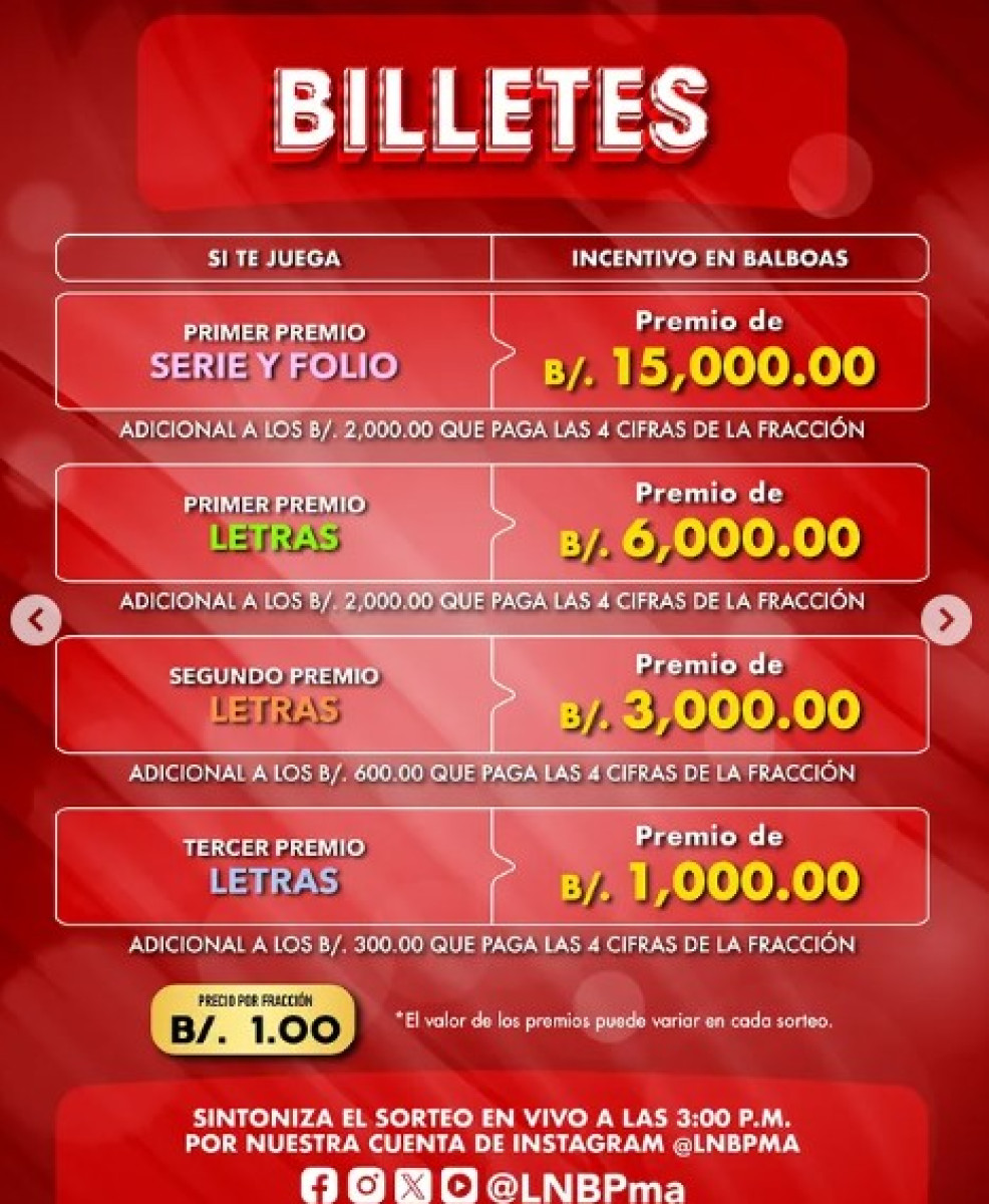 El sorteo de la Lotería Nacional de Panamá iniciará a las 3: 00 p. m.